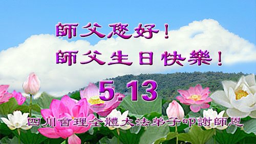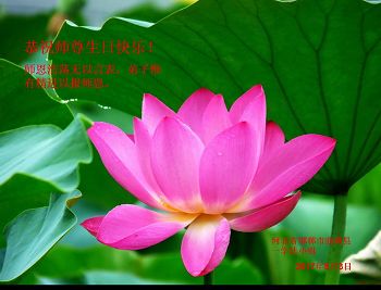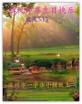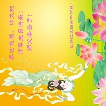 慈悲偉大的師尊:您好!今年的「五一三」是師尊六十六華誕,也是法輪大法洪傳二十五週年紀念日,又是第十八屆世界法輪大法日。在這普天同慶的神聖節日裏,弟子向偉大的師尊問好!並恭祝偉大的師尊生日快樂!
