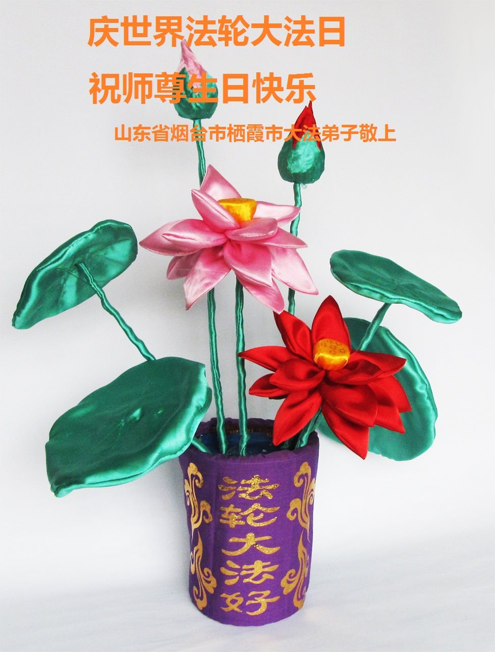 煙台市牟平區全體大法弟子恭祝師尊生日快樂!恭賀全世界大法弟子節日快樂!