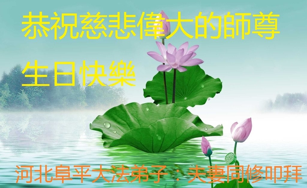 河北阜平大法弟子夫妻恭祝慈悲偉大的師尊生日快樂!
