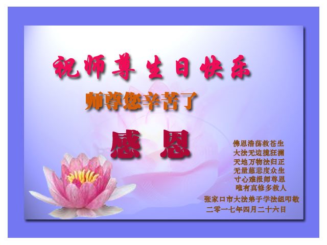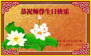 我們是河北省張家口地區懷來縣三人一個學法小組,在今年513師父生日來臨之際,我們同修三人衷心的祝願慈悲偉大的師尊生日快樂!感謝師父多年來在我們修煉的路上慈悲呵護,使我們走到了今天,在正法還剩不多的時間裏,我們更加努力做好三件事,聽師父話實修自己多救人,跟師父回家。