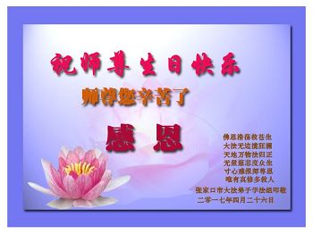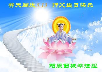 值此師父華誕暨第十八屆法輪大法日到來之際,我們學法小組全體同修向慈悲偉大的師父致以最真誠崇高的敬意和感恩!恭祝師父生日快樂!