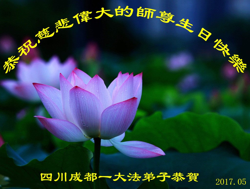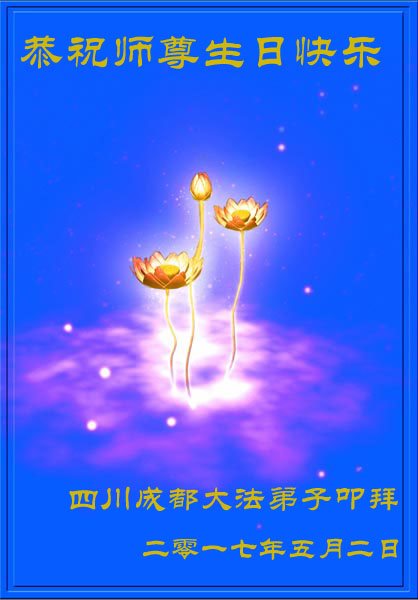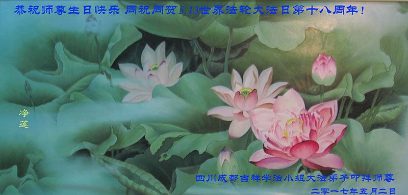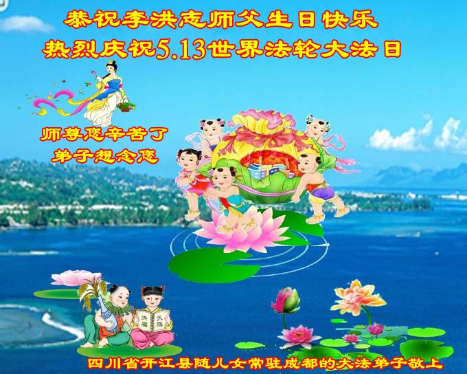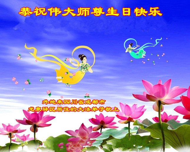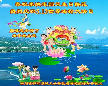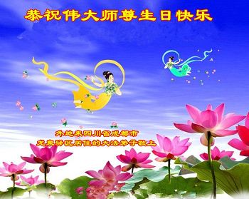 師父您辛苦了,我們彭州大法弟子想念您!恭祝法輪大法洪傳二十五週年!恭祝慈悲偉大的師尊生日快樂!