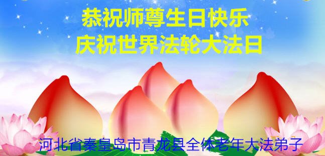 秦皇島大法弟子恭賀法輪大法傳世二十五週年!慶祝第十八屆「五一三」世界法輪大法日!恭祝慈悲偉大的師尊六十六華誕。恭祝師尊生日快樂!
