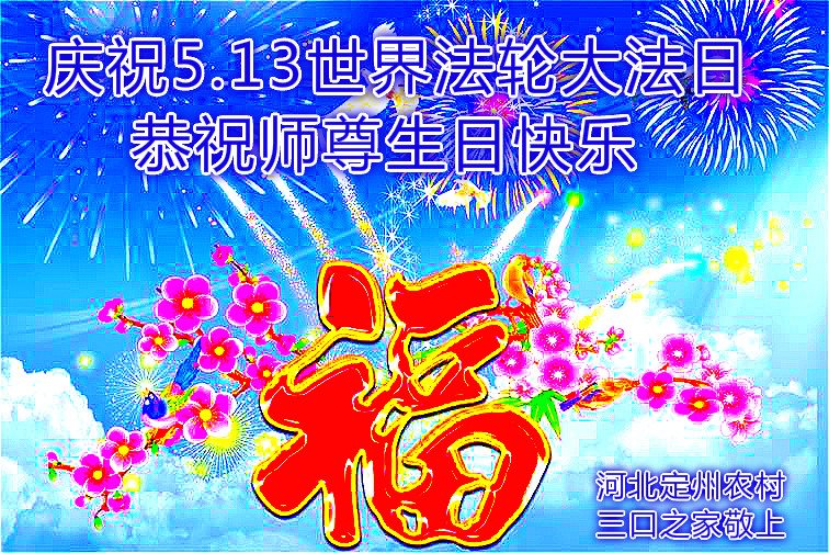 河北省衡水市深州市農村大法弟子祝慈悲偉大的師父生日快樂!熱烈慶祝世界法輪大法日!