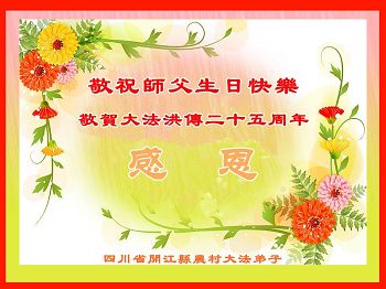 四川省達州市開江縣農村大法弟子敬祝師父生日快樂!敬賀大法洪傳二十五週年!
