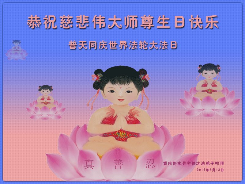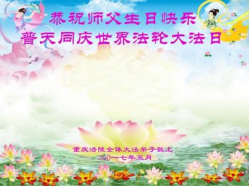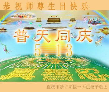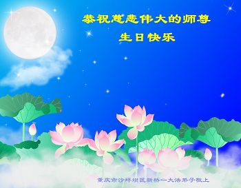 重慶市北碚區一大法弟子恭祝恩師生日快樂!感謝師父多年對弟子慈悲與保護。在以後的修煉時間裏,弟子唯有勇猛精進,修去人心,方能對得起恩師的苦度。
