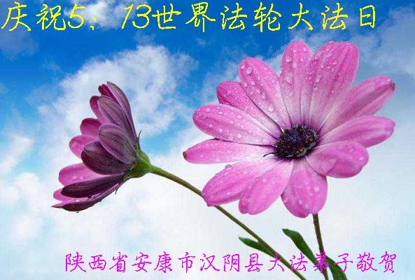 陝西省安康市漢陰縣大法弟子祝師父生日快樂!慶祝世界法輪大法日!