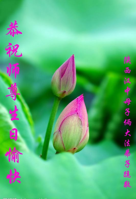 陝西省漢中市勉縣大法弟子母女恭祝慈悲偉大的師尊生日快樂!