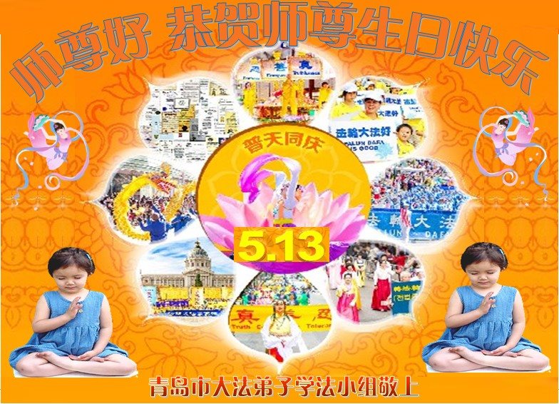 山東省青島大法弟子學法小組恭祝師尊生日快樂!慶祝法輪大法日!