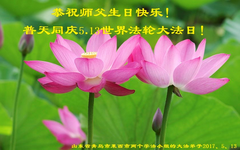 山東省青島市黃島區膠南大法弟子熱烈祝賀5.13法輪大法日!恭祝師父生日快樂!師父辛苦了!
