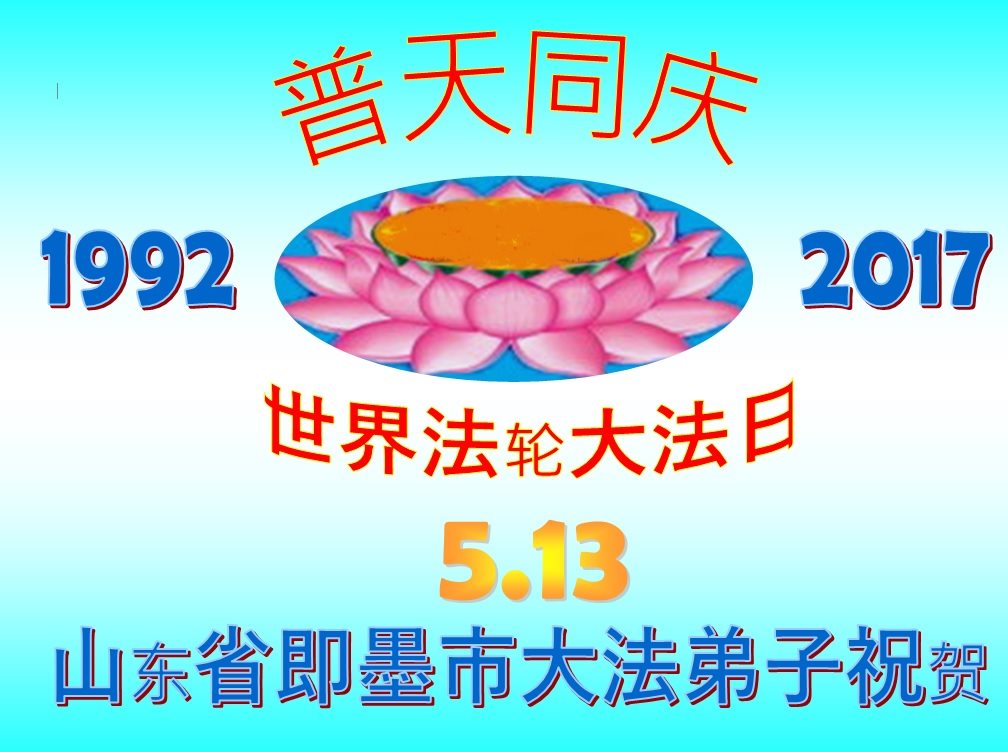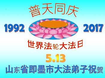 山東省青島市即墨市大法弟子祝賀世界法輪大法日!