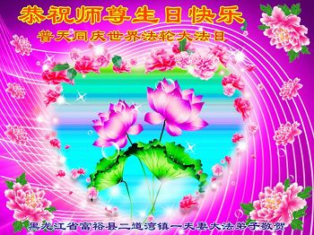 黑龍江省齊齊哈爾市富裕縣二道灣鎮夫妻大法弟子恭賀法輪大法日!