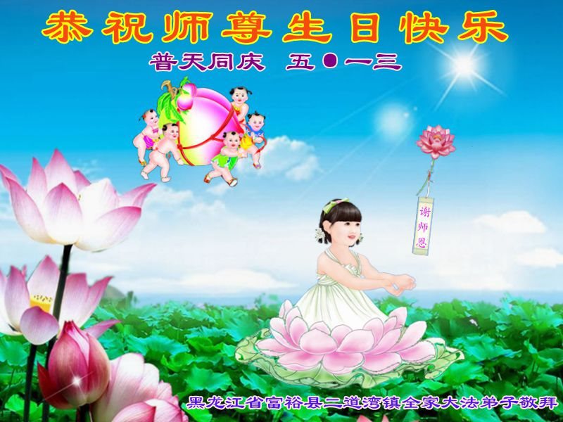 黑龍江省齊齊哈爾地區大法弟子恭祝師父生日快樂!慶祝世界法輪大法日!