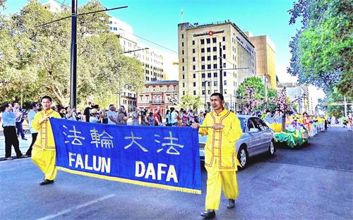 ![]() 圖1~2:南澳法輪功學員參加澳洲日慶祝遊行。 |