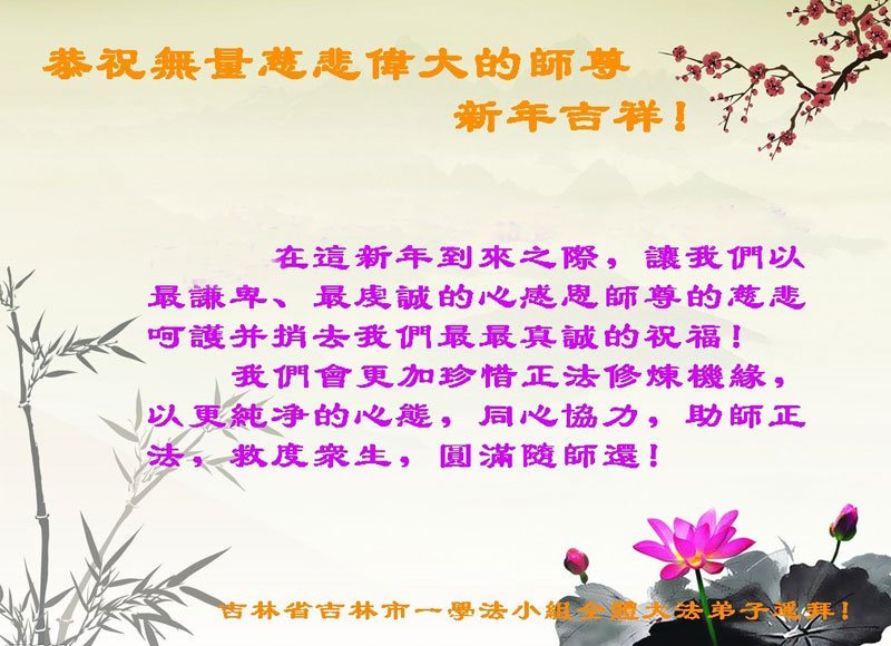 吉林市一學法小組大法弟子恭祝慈悲偉大的恩師新年快樂!