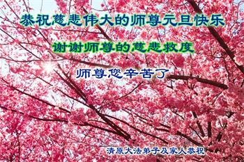 在元旦到來之際,我和母親、孩子向師尊問好,雖然我自己做的不好,以後我會努力改變自己,同化大法,做一個真修、實修的大法弟子。祝 師父節日快樂!