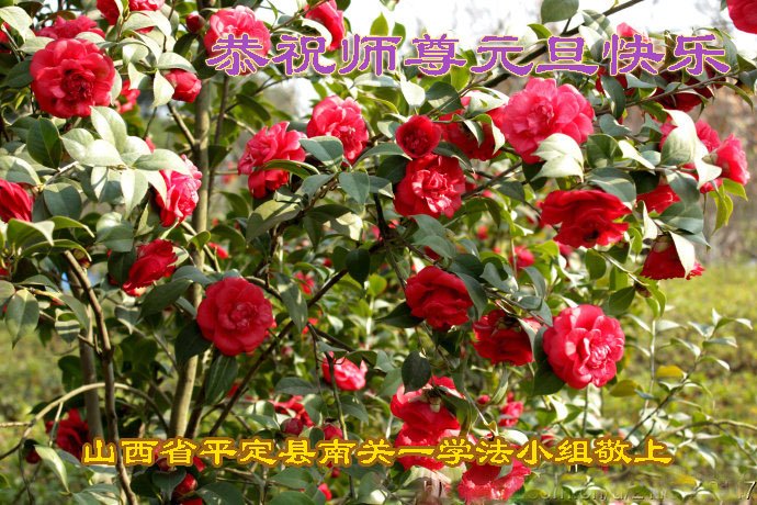 山西省陽泉市平定縣南關一學法小組大法弟子們恭祝慈悲偉大的師尊元旦快樂!