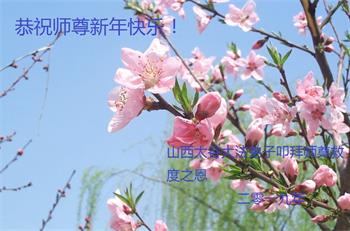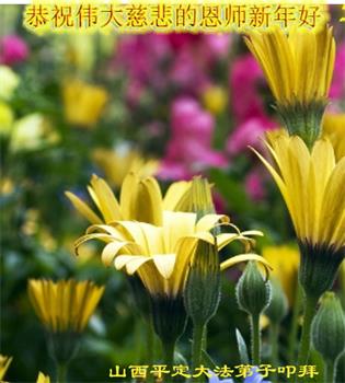 山西太谷大法弟子恭祝師尊新年快樂!一年轉眼又過去了,時間變的飛快,不夠用,一邊安排正常生活,一邊按照師父的要求抓緊時間做好三件事,磕磕絆絆,盡力前行,跟緊師父正法進程,返本歸真,回歸美好的家園!