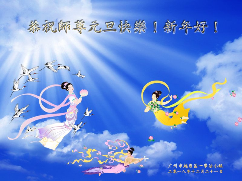 在二零一九年新年到來之際,廣州番禺大法弟子及家人祝師尊新年快樂!我們要學好法,實修自己,做好三件事,跟師尊回家。