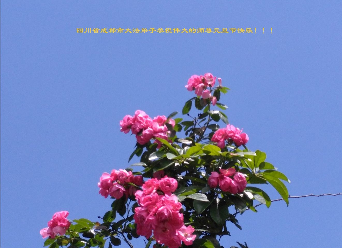 四川省成都市大法弟子恭祝偉大的師尊元旦快樂!我們將無懼前行路上的艱難險阻,在師尊的浩蕩洪恩保護下,穩健的做好三件事,圓滿隨師還。