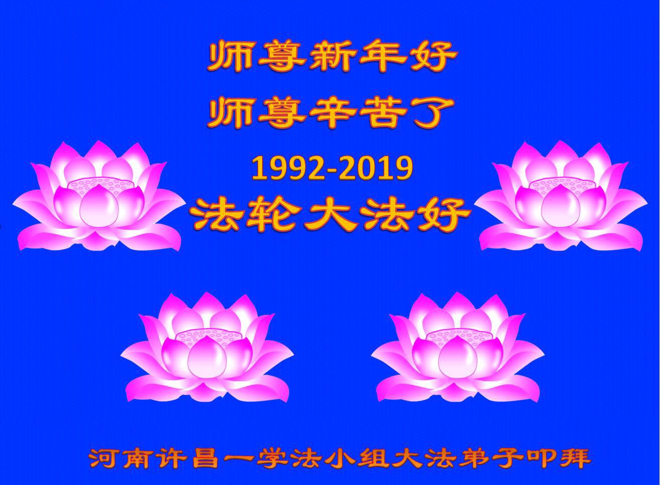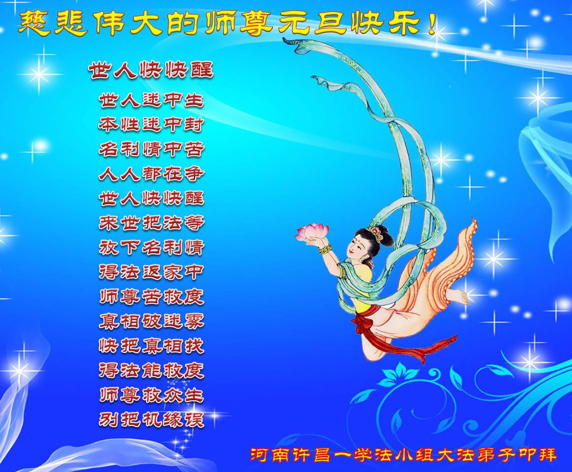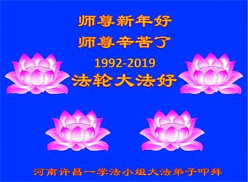 河南許昌三個學法小組大法弟子恭祝慈悲偉大的師尊新年快樂!