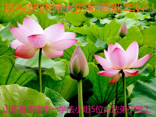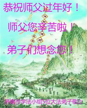 山東濟南歷下一家學法小組的大法弟子恭祝師父新年快樂!