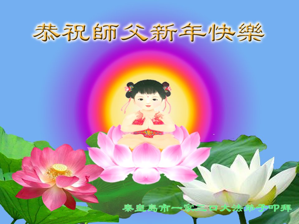 河北省秦皇島一三口之家大法弟子恭祝慈悲偉大的師尊新年快樂!