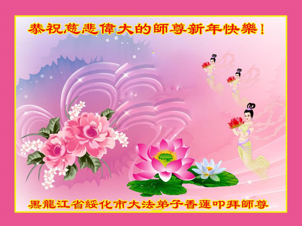 黑龍江省綏化市大法弟子恭祝慈悲偉大的師尊新年快樂!感恩師尊的慈悲苦度!弟子一定不辜負師尊的期望,向內找修好自己做好三件事多救人。讓師尊多一份欣慰,少一份操勞。惟願師尊笑!弟子叩拜師尊!