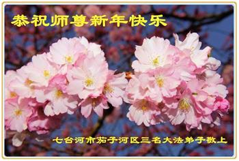 黑龍江七台河市茄子河區三名大法弟子恭祝師尊新年快樂!