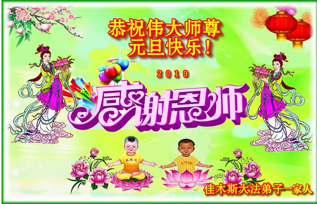 師尊您好,感恩師尊慈悲苦度,師尊您辛苦了,您時時心繫世上萬事萬物,救世人出危難,幫弟子越困劫,弟子們想念您,恭祝師尊2019年元旦快樂!