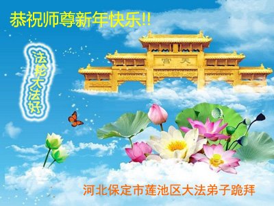 我們全體河北省保定市定興縣大法弟子問候師尊新年好!跪拜師尊!師尊您辛苦了!師尊您為了救度我們,為我們操碎了心!我們用人間甚麼語言也無法表達對師尊的感恩,只有精進!再精進!修好自己,才能救度眾生。