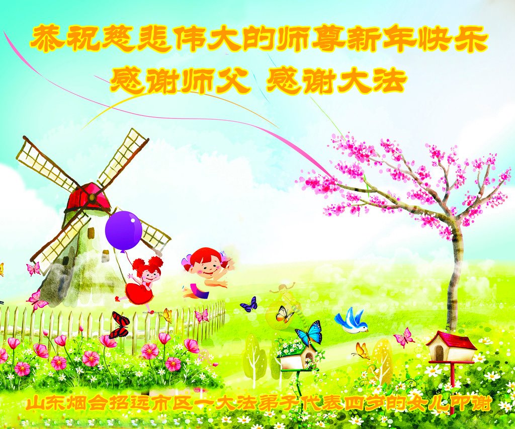 山東煙台招遠一大法弟子代表四歲的女兒恭祝偉大的師尊新年快樂!