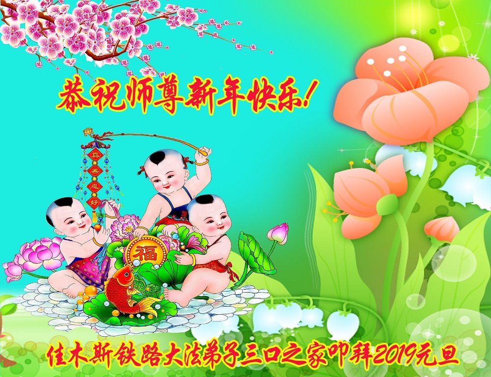 黑龍江佳木斯鐵路地區大法弟子三口之家恭祝慈悲偉大的師尊新年快樂!
