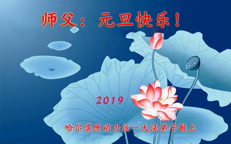 黑龍江省哈爾濱原動力區一大法弟子恭祝師父元旦快樂!