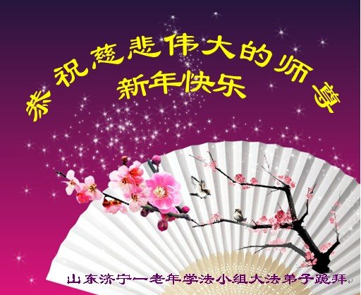 山東濟寧一老年學法小組大法弟子恭祝至尊至聖偉大慈悲的師父新年快樂!