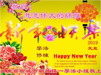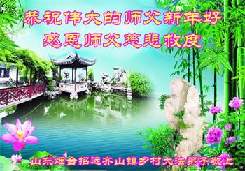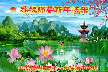 山東煙台招遠市全體大法弟子恭祝師尊新年快樂!弟子們叩拜師尊!感恩師尊的慈悲救度!師尊您辛苦了!