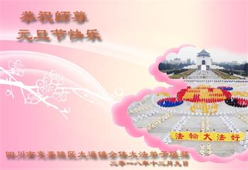 四川省南充西城一大法弟子恭祝慈悲偉大的師尊元旦快樂!