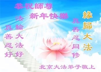北京大法弟子恭祝慈悲偉大的師尊新年好!