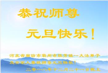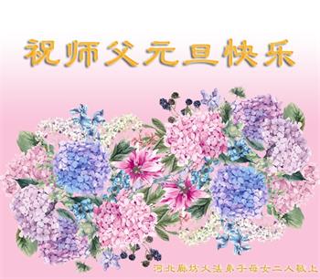 河北省廊坊市霸州市勝芳鎮母子倆大法弟子恭祝慈悲偉大的師尊元旦快樂!