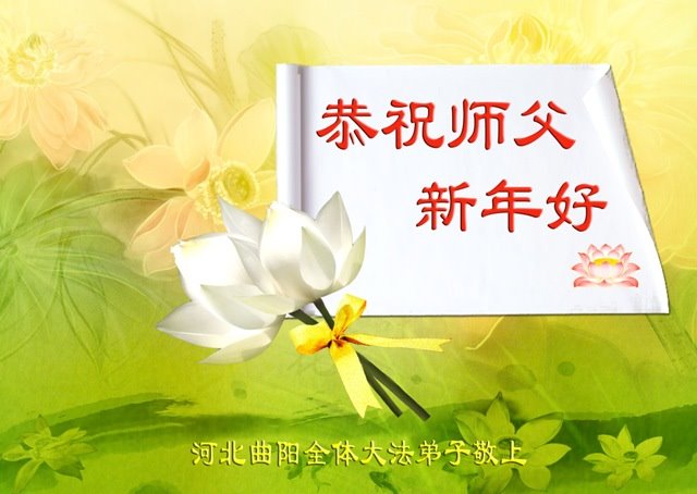 近來我縣在邪黨迫害大法後不修的大法弟子有些又回到大法中,因為大家認識到只有法輪大法才能救度世人,師父沒有放棄不爭氣的弟子,師父比我們自己更珍惜我們,現代表他們恭祝師父新年快樂!