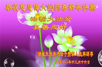 在新年到來之際,我們濰坊大法弟子恭祝師尊新年快樂!在新的一年裏,我們一定要做好三件事,多救人,不辜負師尊慈悲苦度。