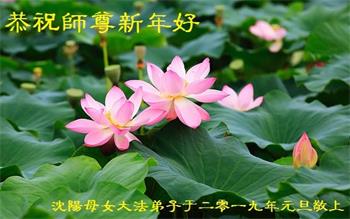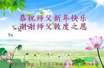 尊敬的師尊新年好!2019新年來臨之際,我們三個瀋陽老年大法弟子感謝師尊洪恩浩蕩!我們每天、每時、每刻都在師尊慈悲的保護之中,做著我們大法弟子應該做的三件事。感恩師尊!叩拜師尊!師尊啊弟子想念您,要精進修自己,多救人,不辜負師尊之恩。弟子在此給您恭賀新年了!師尊新年好!