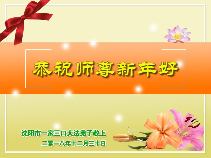 師尊!我們無法感謝您的佛恩浩蕩,僅在此代表學法小組的大法學員恭祝師尊新年快樂!代表我的全家恭祝師尊新年快樂!
