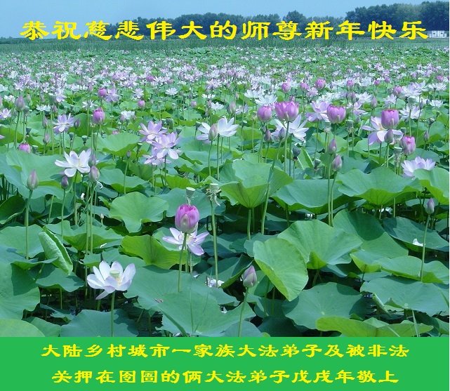 大陸鄉村城市一家族大法弟子及被非法關押在囹圄的倆大法弟子恭祝慈悲偉大的師尊新年好!新年快樂!