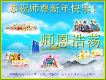 四川南充高坪區絲綢、醫生、農民等行業全體大法弟子合十叩拜