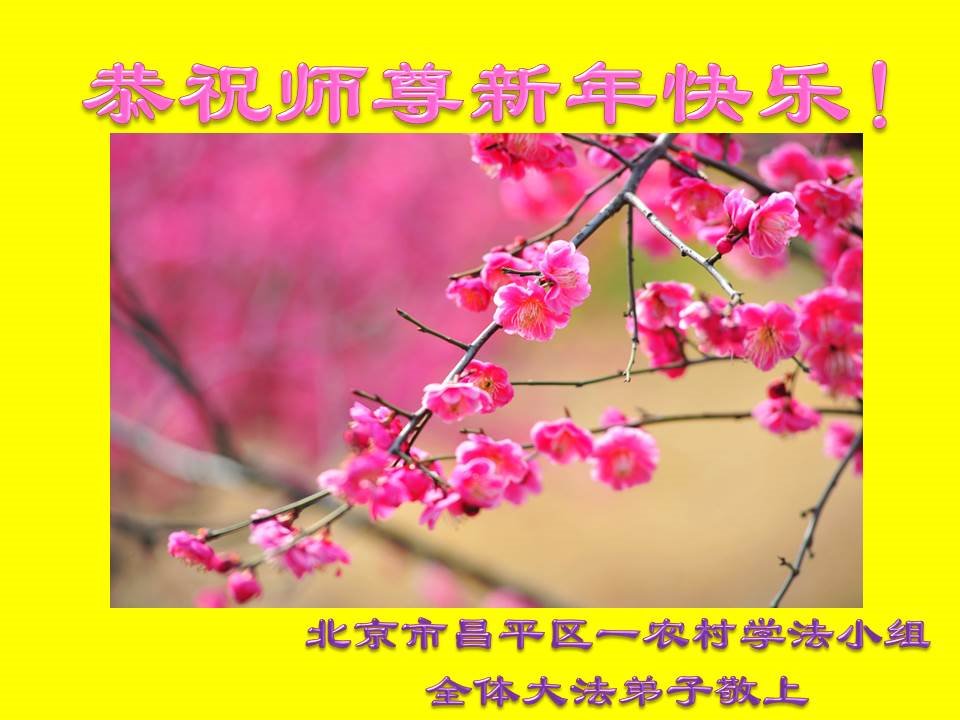 我是北京農村的大法弟子,我代表自己以及經常看大法書的媽媽,以及全家恭祝師尊新年好!在新的一年裏,我們會更精進,我們會更努力,請師尊放心!謝謝師尊!