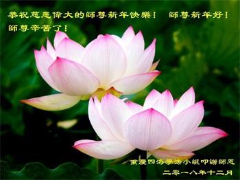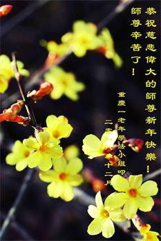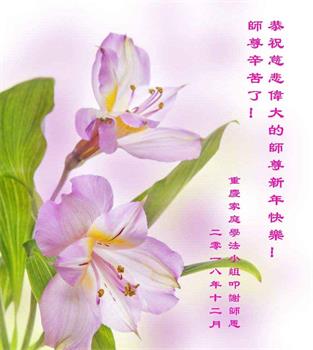 師尊:由於迷失在常人的名利情中,被舊勢力鑽空子,差一點失去人身。今幸得恩師不棄,重新踏上修煉之路。不肖弟子定將珍惜修煉機緣,做好三件事,讓師尊放心。在此新年到來之際,跪拜恩師,祝恩師新年快樂!