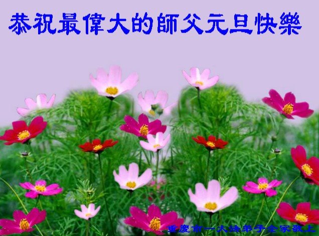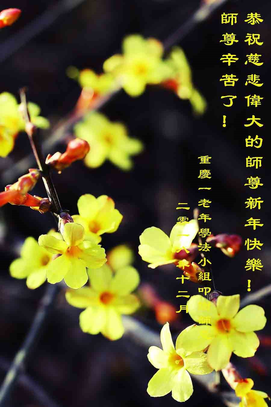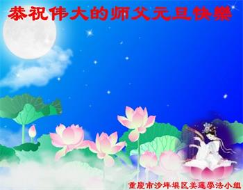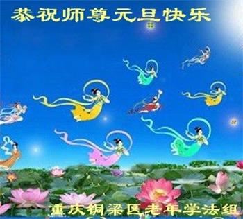 在新的一年即將來臨之際,重慶銅梁區老年組大法弟子恭祝師尊元旦快樂!我們一定做好三件事,救度更多眾生,惟願師尊笑。