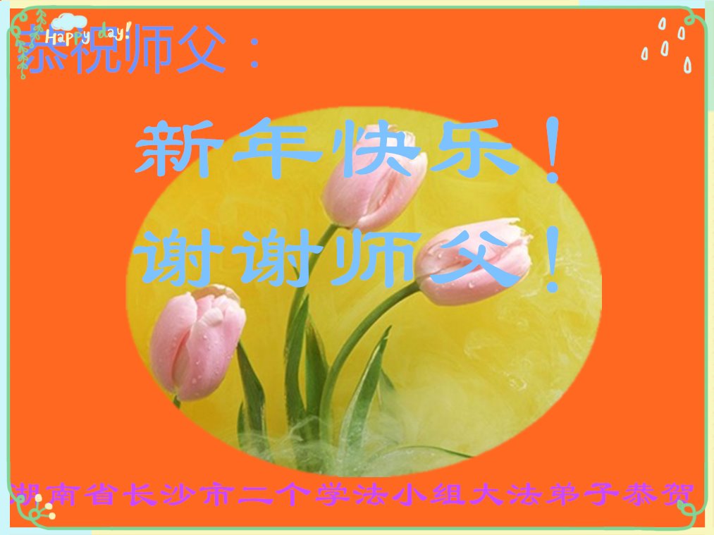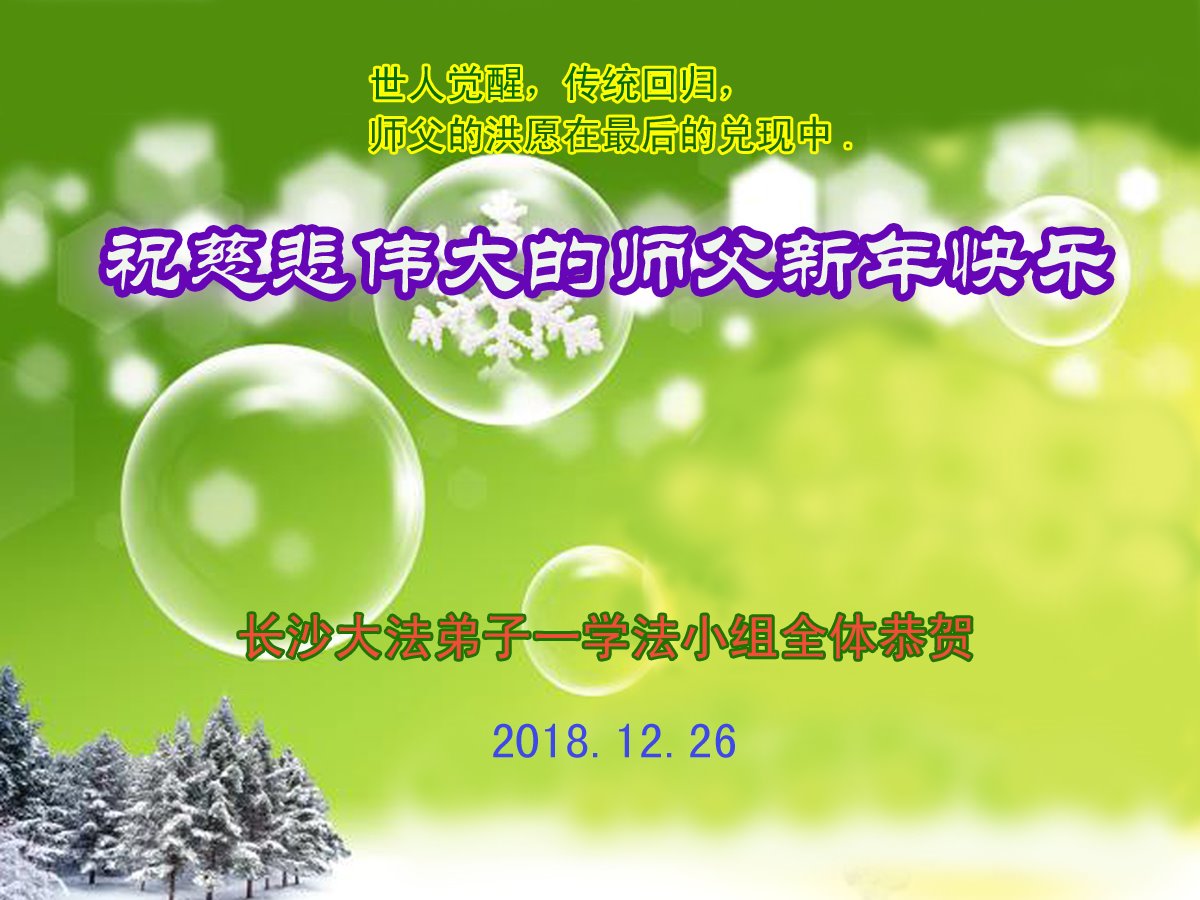 我們學法小組大法弟子祝慈悲偉大的師尊:新年快樂!我們學法小組同修一定不辜負師尊的期望,做好三件事,精進!再精進!