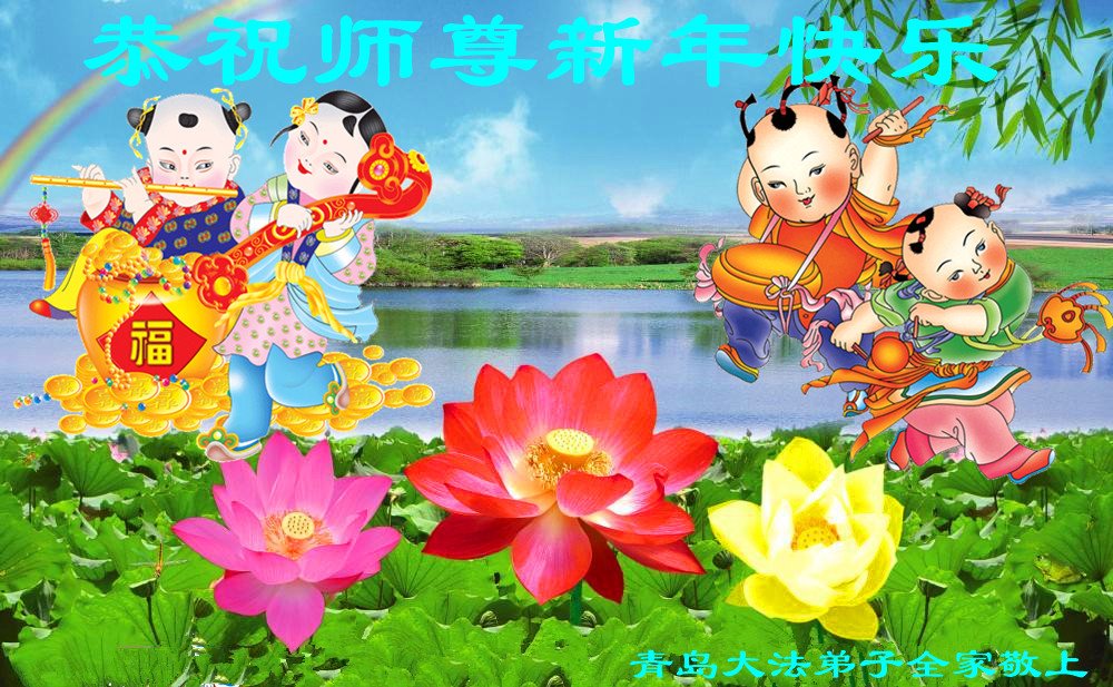 山東省青島全體大法弟子恭祝慈悲偉大的師尊新年快樂!